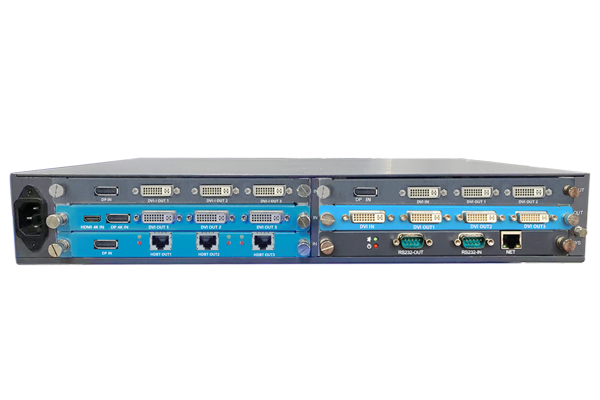 该系列产品是机架式超高清多屏扩展设备,单机最多支持5块DL-DVI/HDMI/DP三屏扩展卡混合插入,支持集中式以太网管理。